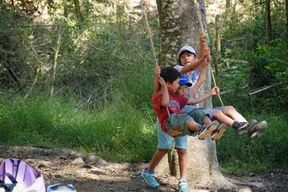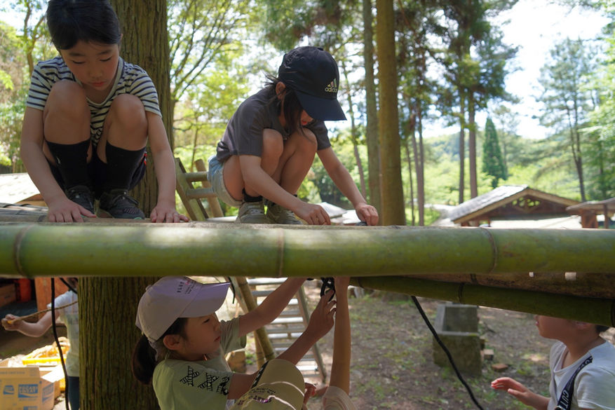 森のブランコやハンモック、スラッグラインに焚き火 自分で考えて思いっきり遊んじゃえ!! 「さあ、今日はなにする?」からスタートの遊び場です(^^♪